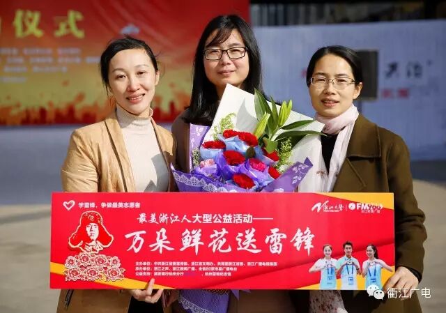 在学雷锋纪念日到来之际,由省委宣传部、省文明办、团省委、浙江广电集团联合主办的“万朵鲜花送雷锋”大型公益活动在杭州启动。全国道德模范孔胜东、俞复玲、陈斌强、毛陈冰、郭文标与“最美浙江人”代表、浙江省文化体育界知名人物作为形象大使,把鲜花和证书送到群众推荐的“活雷锋”手中,向他们表达感谢和敬意。